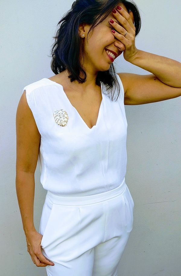 El broche tiene incorporado un imán y viene con su imán compañero decorado con cinta. Este se utiliza en el interior de la prenda permitiendo un agarre seguro y práctico, sin dañar la prenda.