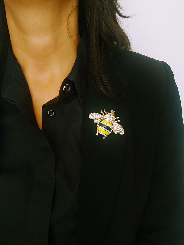 El broche tiene incorporado un imán y viene con su imán compañero decorado con cinta. Este se utiliza en el interior de la prenda permitiendo un agarre seguro y práctico, sin dañar la prenda.
