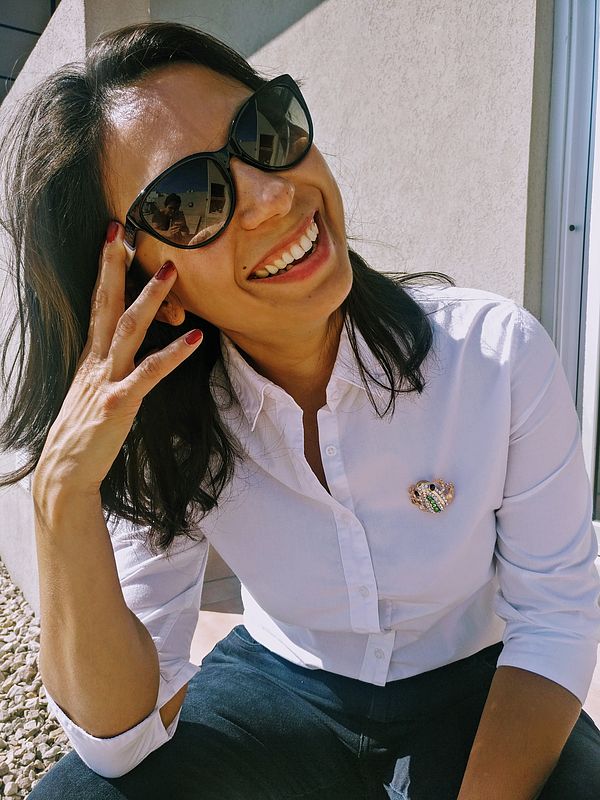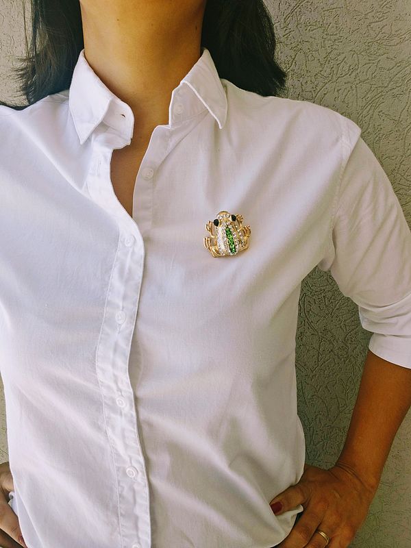 El broche tiene incorporado un imán y viene con su imán compañero decorado con cinta. Este se utiliza en el interior de la prenda permitiendo un agarre seguro y práctico, sin dañar la prenda.